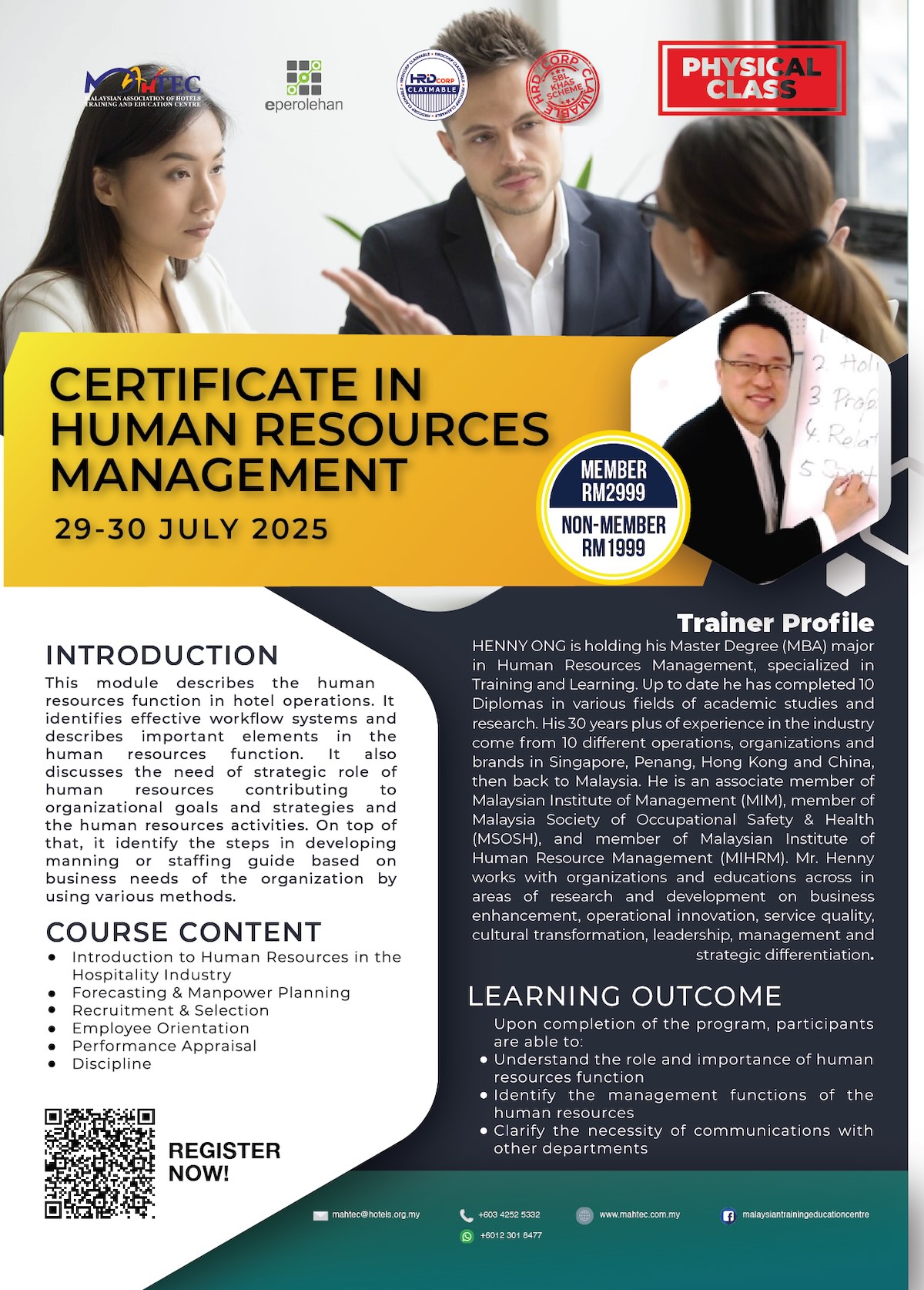 This course will enable participants to develop a better appreciation of a customer relationship management practices and contribute towards a strong customer orientation as well as an understanding of service excellence in the hospitality industry